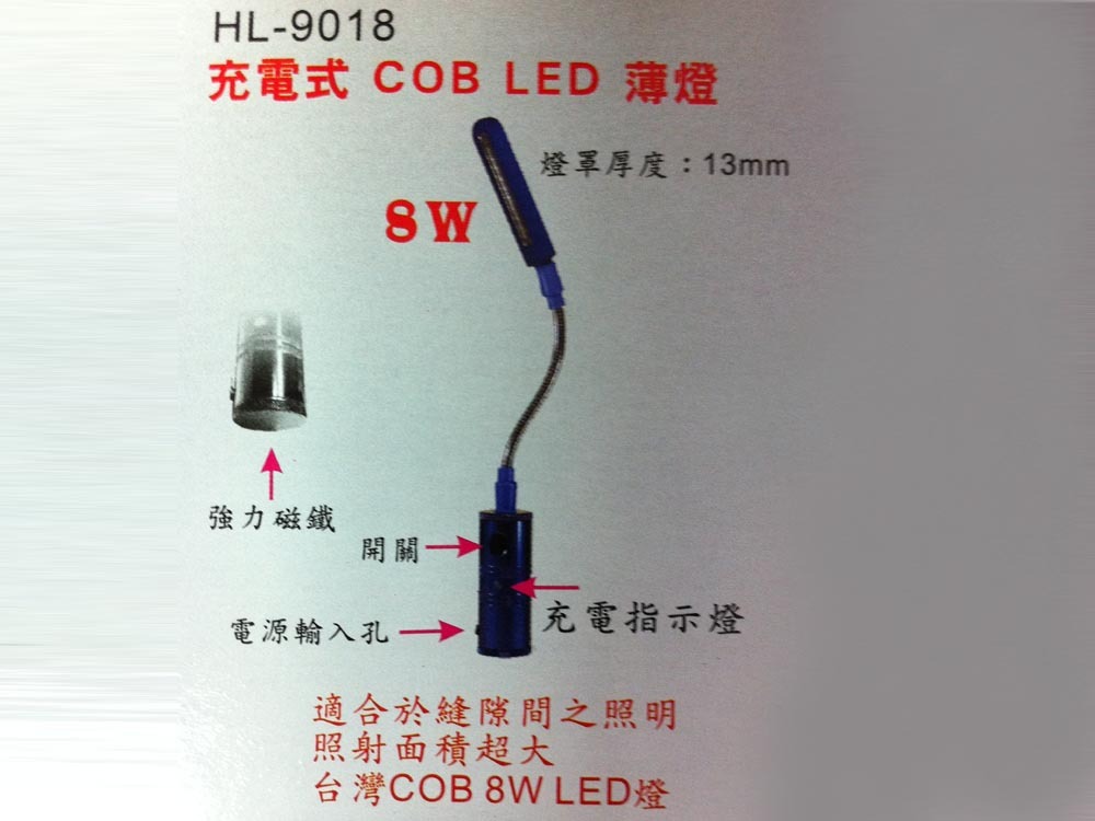桌上型蛇管充電式COB LED工作燈